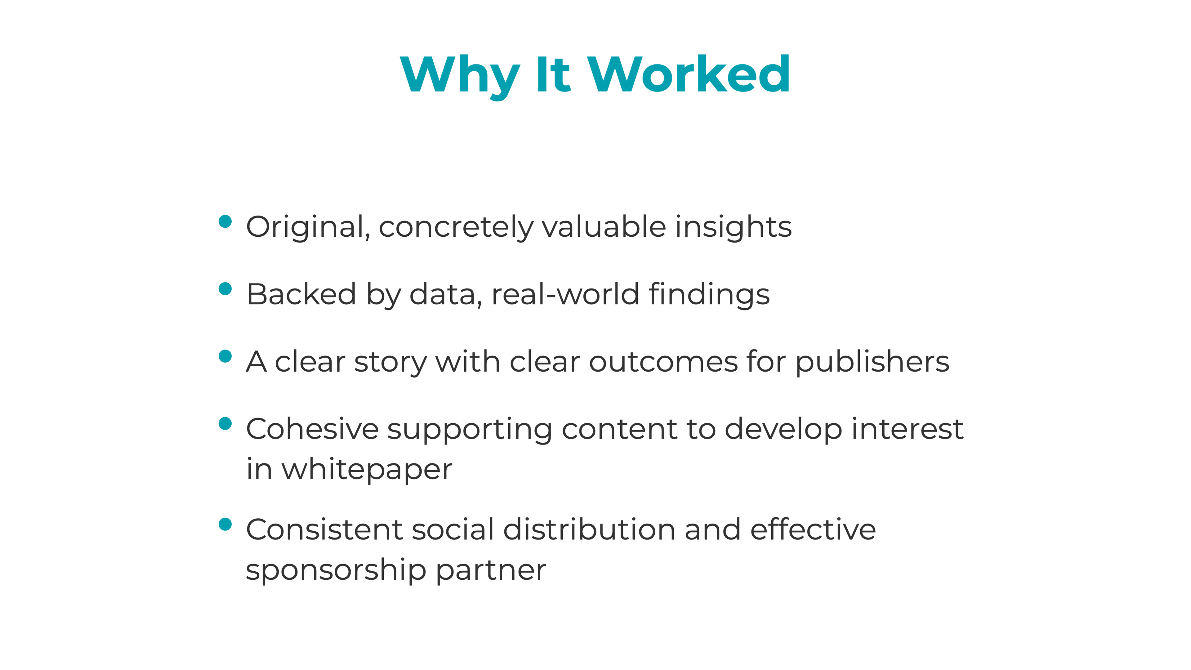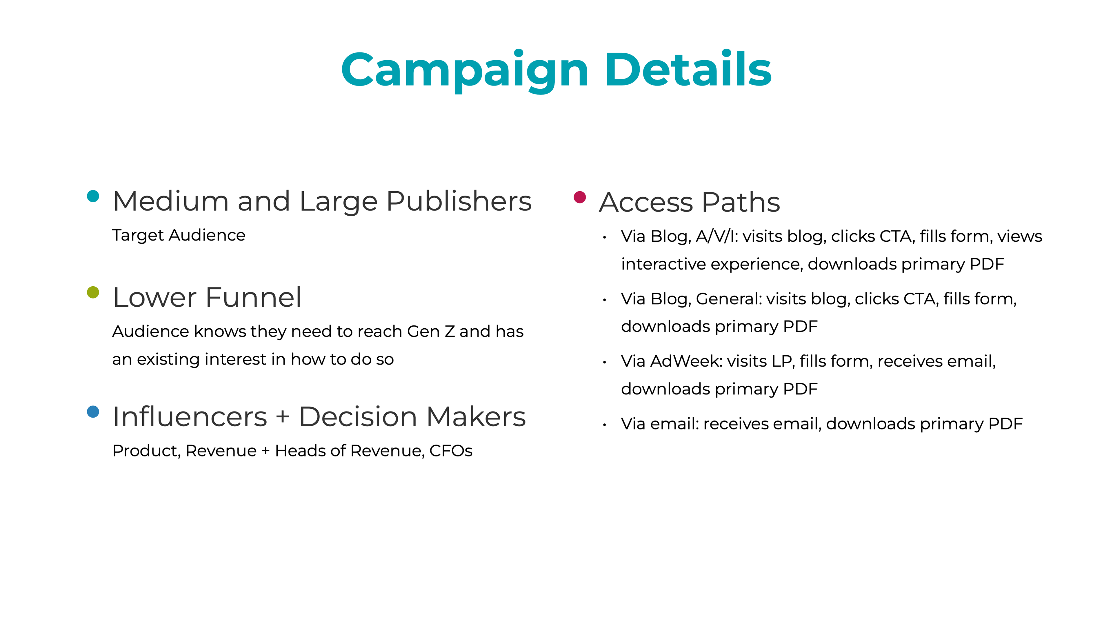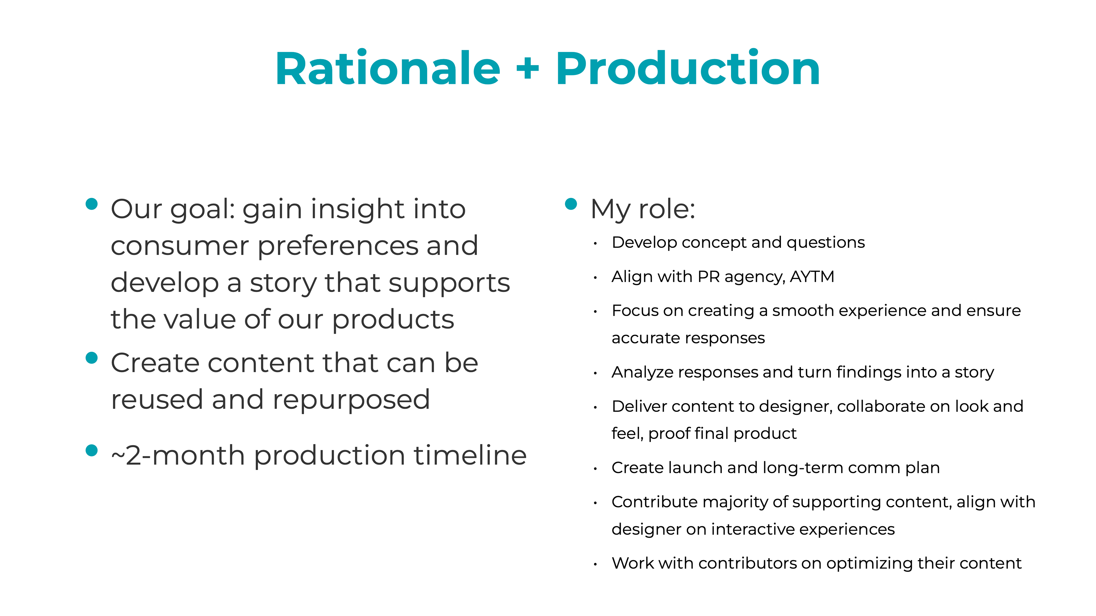 CAMPAIGN RECAP: A survey of 1,000 consumers, conducted via industry research firm AYTM, helped me understand how audiences prefer to consume content online. This allowed me to provide guidance to publishers—one of two of the company’s primary market—on how to optimize online media.