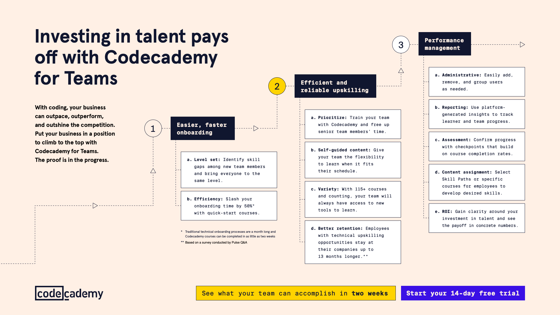 INFOGRAPHIC: Utilizing Codecademy's own engineering expertise, this mid-funnel piece provided a snapshot of how the company's recently-launched B2B product guides Teams customers toward a well-prepared workforce.